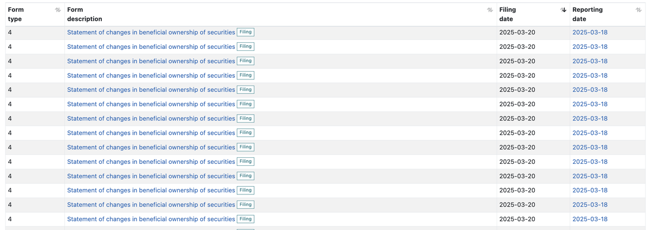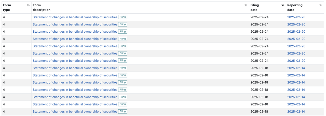 February 14: A group of 7 executives collectively sold 2,775 shares at $523.51 during the closing auction. The volume was small, but the coordinated selling triggered a 4% drop the next day.