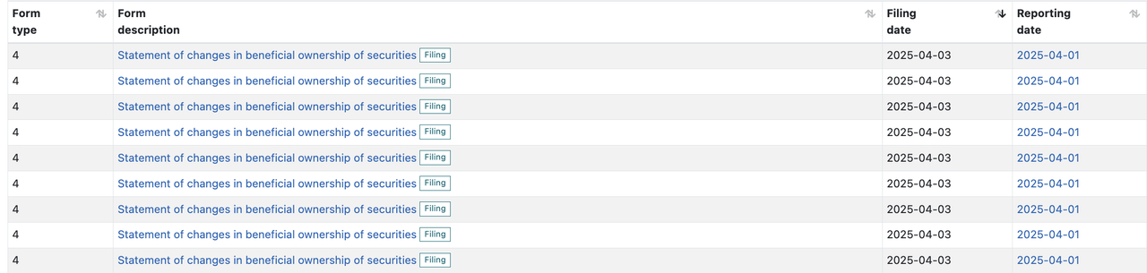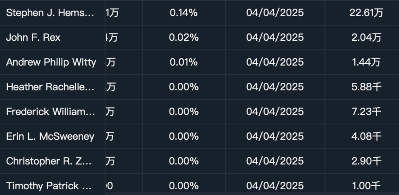 On April 1 and March 18, the company granted symbolic stock awards (dozens to hundreds of shares) to directors and executives, causing no major price fluctuations.