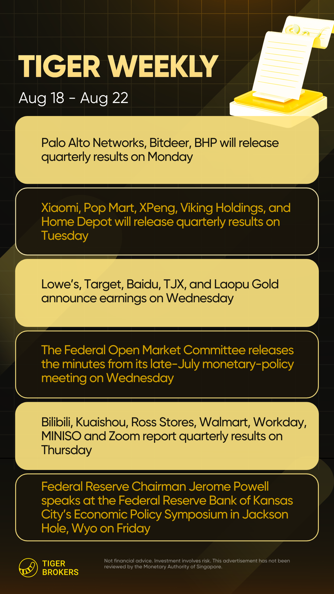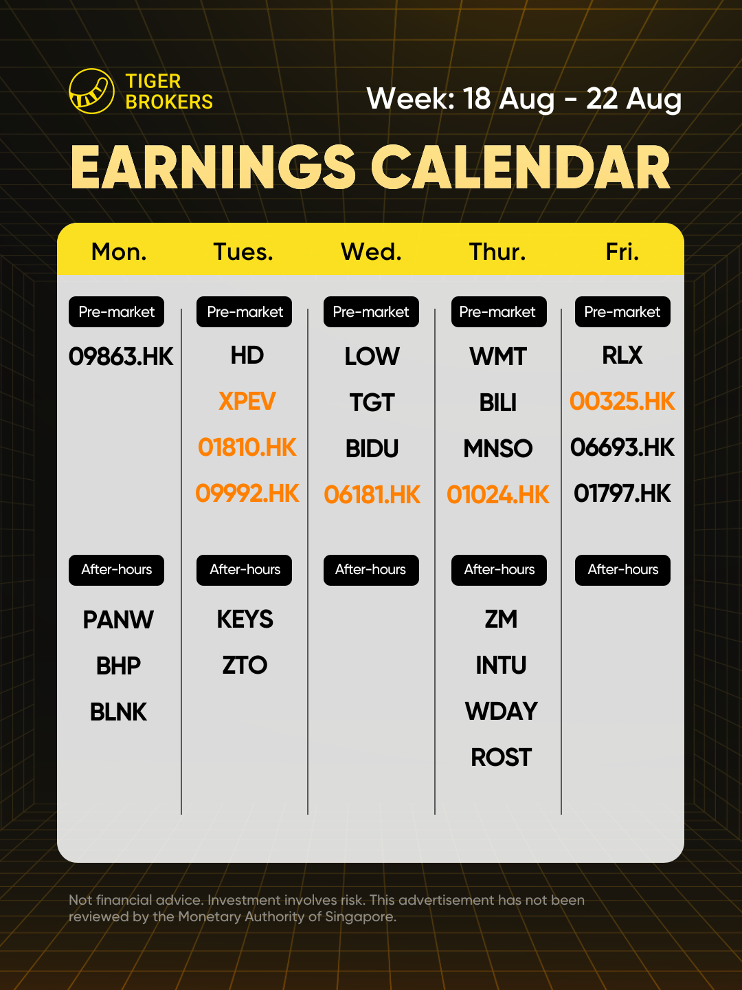 Earnings season slows, but heavyweight retailers will take center stage. Walmart (WMT), Target (TGT), and Home Depot (HD) are set to report, offering a key read on U.S. consumer health.