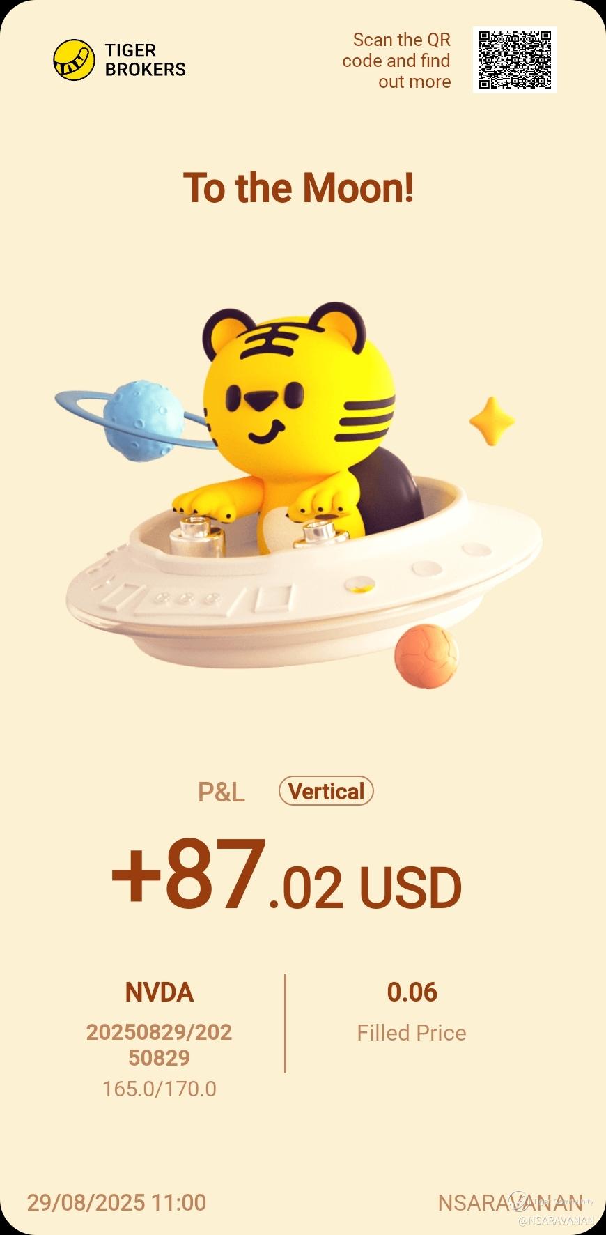 $NVDA VERTICAL 250829 PUT 165.0/PUT 170.0$ credit spread gave 17% profit overnight. Good one