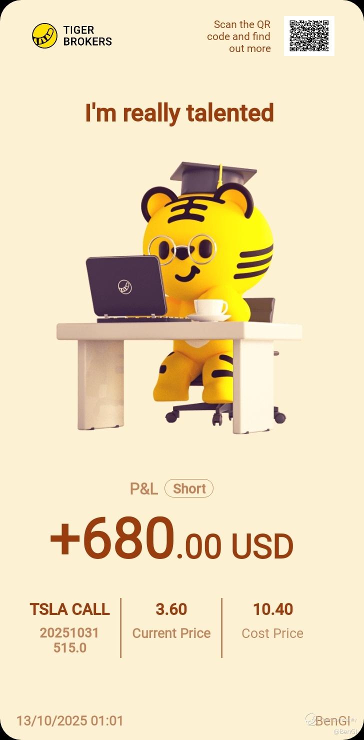 $TSLA 20251031 515.0 CALL$ Hope market recovers soon.