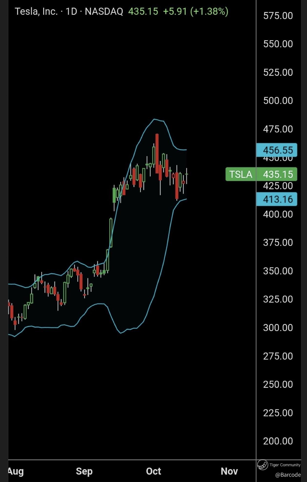 $Tesla Motors(TSLA)$ ๐ฅ๐๐ $TSLA shorts are pressing into one of the tightest triple inside day coils of the year. Bollinger Bands are clamping, earnings hit in a week, and short activity is spiking right into resistance. Teslaโs Annual Shareholder Meeting on 06Nov25 at GigaTexas adds another layer of timing pressure. ๐ค The new Tron: Ares Optimus teaser has reignited the humanoid narrative that can amplify upside momentum. One clean break through 456.55 with volume and the unwind could be ruthless. Shorts are loading the cannon and standing in front of it!