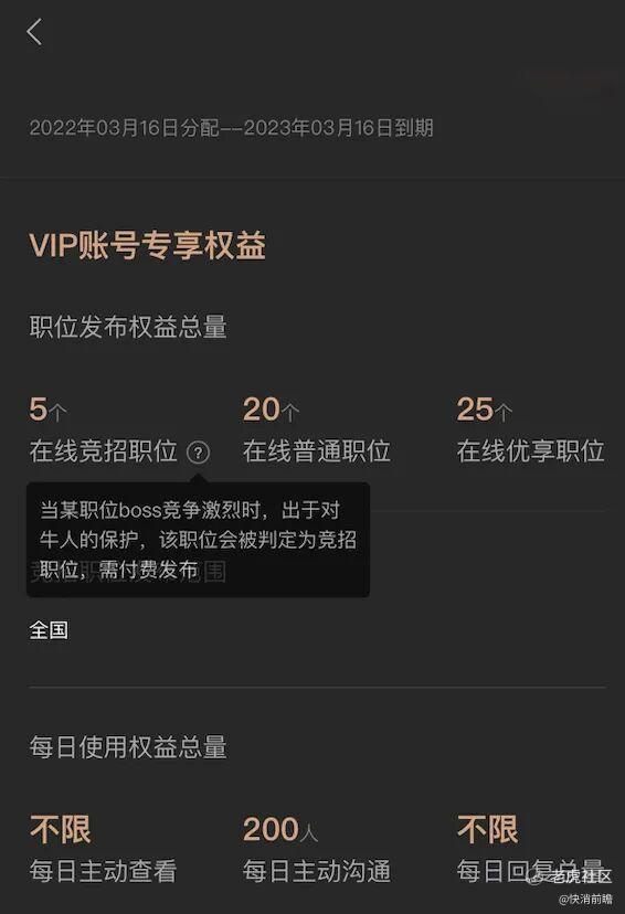 但如今平臺的免費午餐逐漸消失:每日免費溝通次數從50次驟降至5次,逼得HR不得不開通年費會員。根據零態LT此前報道,某資深HR李雲無奈吐槽道:“以前勉強夠用,現在5次打招呼根本不夠,這不擺明了逼人付費嗎?”即使開通了VIP年卡(一年動輒上萬元),企業也並非暢行無阻——套餐內職位發佈權限被嚴格分級:例如50個發佈名額中僅含5個“競招職位”額度,其餘是普通職位和優享職位。平臺對職位是否屬於競招有完全自主的解釋權,很多崗位原本免費發佈,隔幾天就被系統列爲競招職位,一不留神競招名額就耗盡,又得額外掏錢續購。正如消費者所言:“錢沒少花,招聘效果卻每況愈下”。