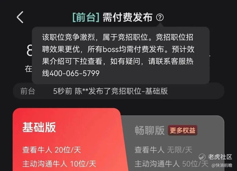 “發個前臺招聘也要付費?”2025年10月,一家公司的HR在BOSS直聘平臺發佈前臺崗位信息時,意外收到系統提示:“該職位競爭激烈,屬於競招職位,所有BOSS均需付費發佈”。