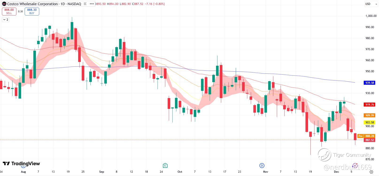 Current Sentiment: The stock is currently in a technical downtrend (approx. 15-20% off its 52-week highs of ~$1080), trading around the $870-$900 level. This "correction" creates a more attractive entry point than previous quarters where COST was "priced for perfection."