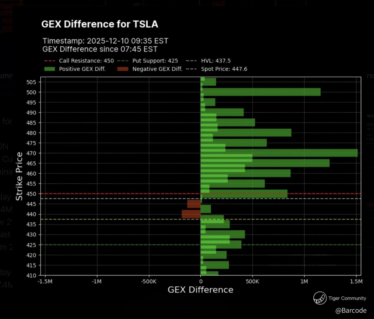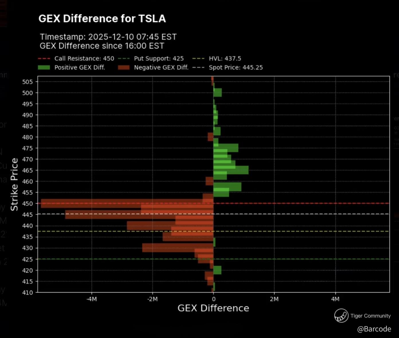 $NVIDIA(NVDA)$ $Alphabet(GOOGL)$ $Alphabet(GOOGL)$ $Tesla Motors(TSLA)$ I have spent decades analysing liquidity regimes and volatility mechanics across global markets. Today’s Tesla gamma dynamics are some of the most tactically significant I have seen in recent months.
