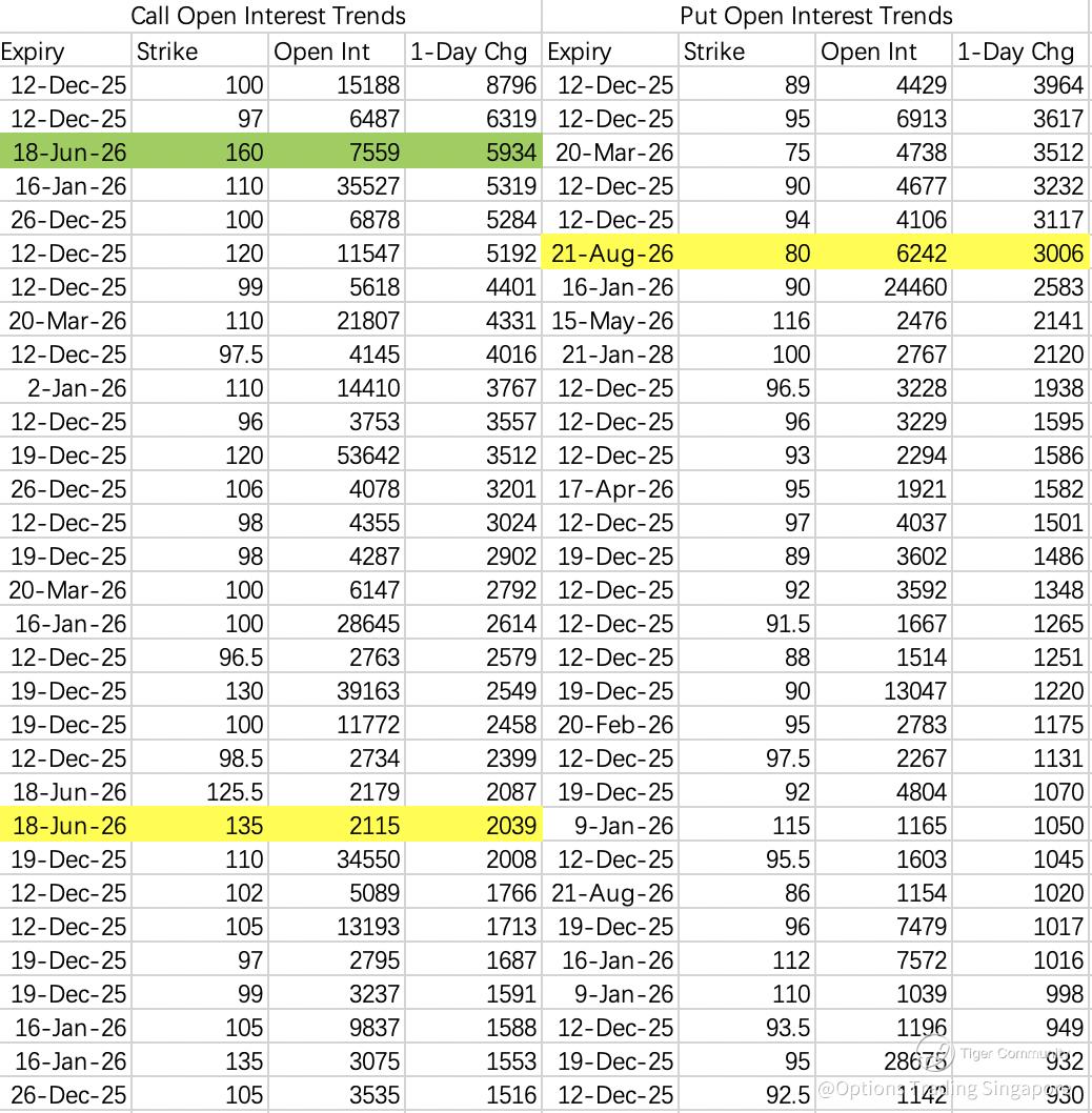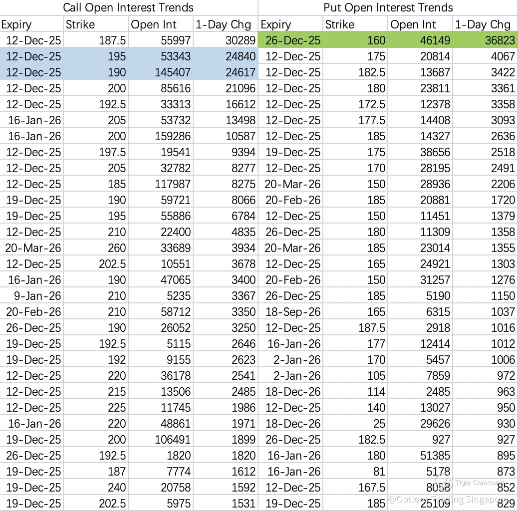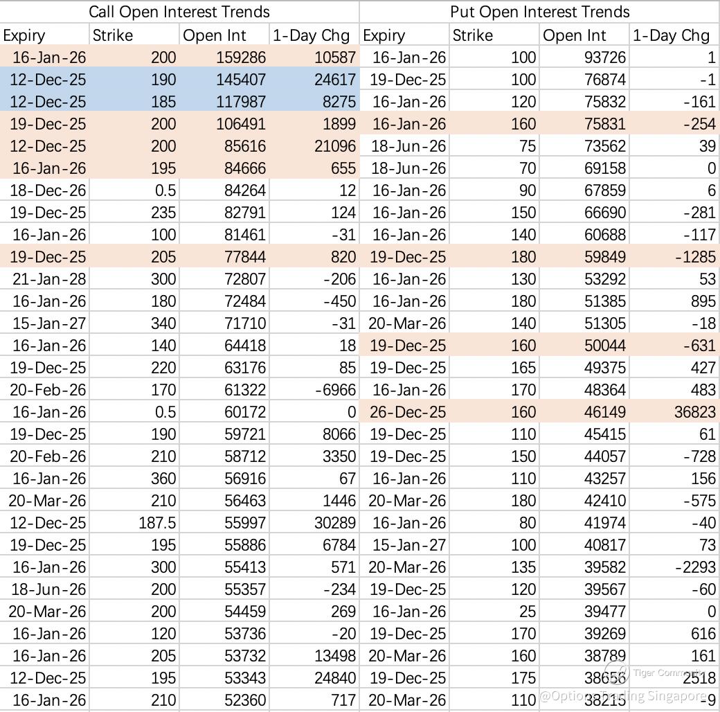The H200 news has pushed put-opening strikes higher. Extreme hedging has eased, support has strengthened, and the market now prices in a more stable bottom. As a result, I cautiously raise the NVDA trading range to $170–$200.