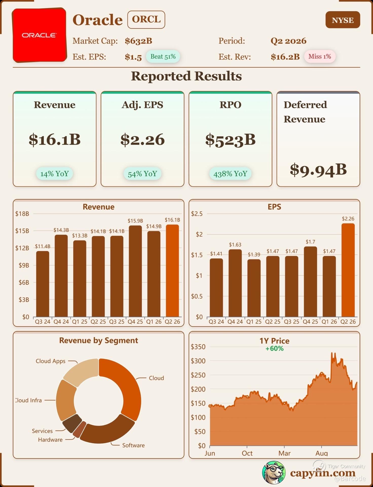 $Oracle(ORCL)$ $NVIDIA(NVDA)$ $Taiwan Semiconductor Manufacturing(TSM)$ π₯ππ Oracle Earnings Breakdown, RPO Erupts to $523B, AI Infrastructure Surges, Cash Burn Deepens πππ₯