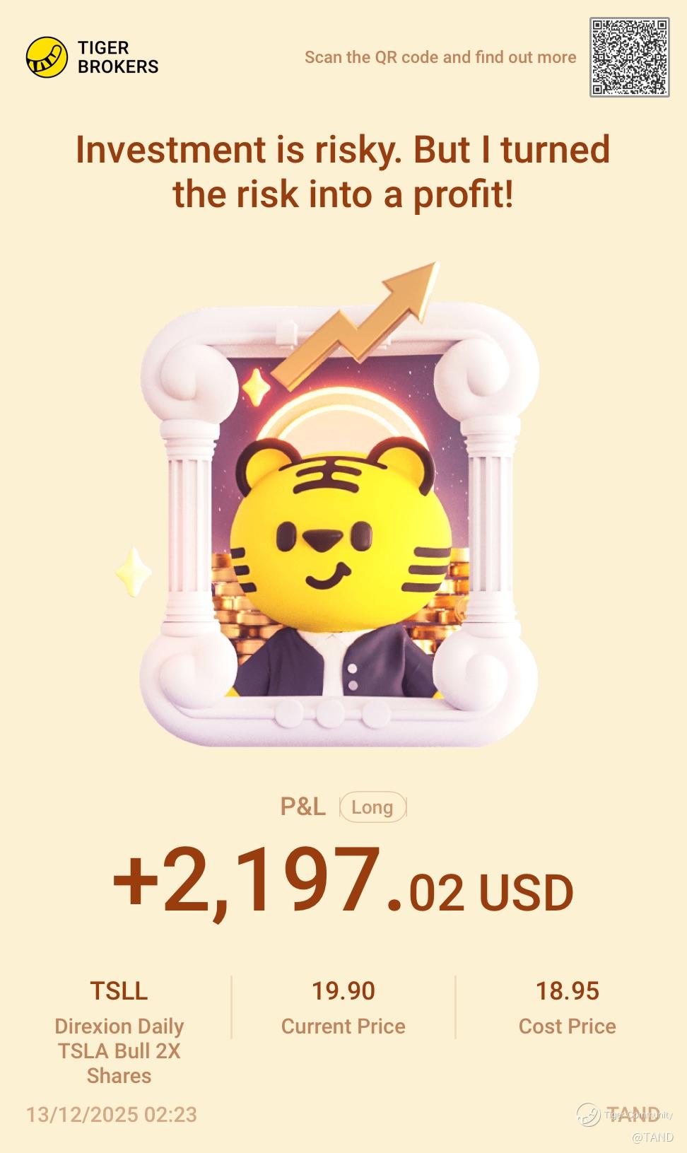 🌟🌟🌟 Congratulations @TAND πŸŽ‰πŸ₯³ $Direxion Daily TSLA Bull 2X Shares(TSLL)$ is a great way to capture $Tesla Motors(TSLA)$ momentum, especially with the highest weekly close in the history of the stock! Way to go! πŸ€–πŸ¦ΎπŸ”‹ πŸš˜πŸ€–πŸŸ© Κœα΄€α΄˜α΄˜Κ TESLA α΄›Κ€α΄€α΄…ΙͺΙ΄Ι’ α΄€Κœα΄‡α΄€α΄…! α΄„Κœα΄‡α΄‡Κ€s, Κ™α΄„ πŸ€πŸ€πŸ€