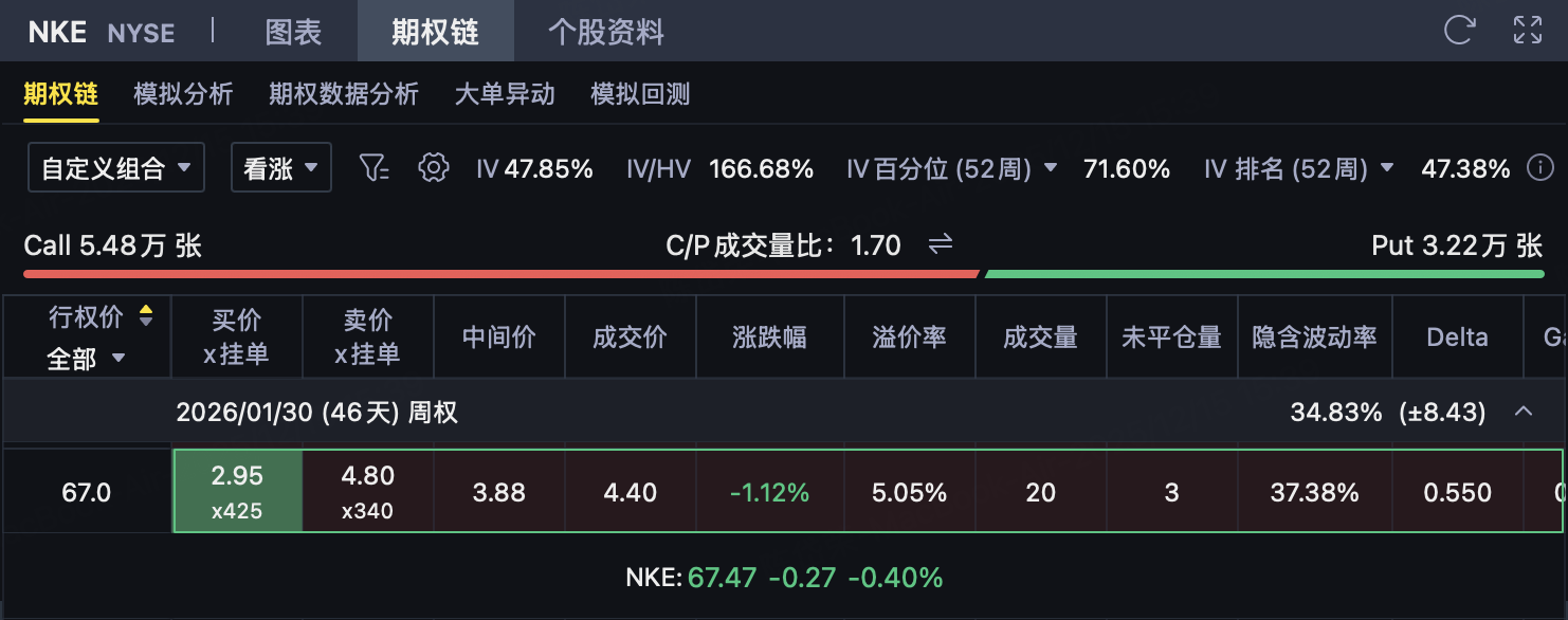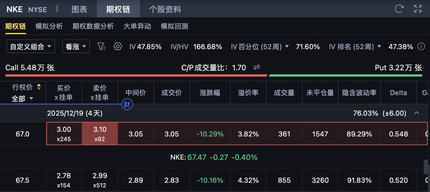 As Nike (NKE) is about to announce its financial report after the U.S. stock market closes on December 18, the pricing of short-term options includes a large number ofEvent Premium。