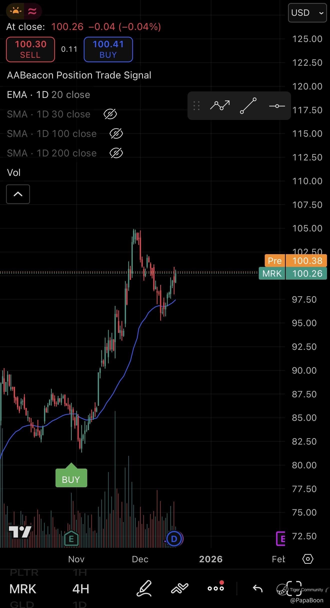 $Merck(MRK)$ Stock has been going strong! Bought a few position trades and doing so well. Bounced off EMA20 and expect it to go even higher!