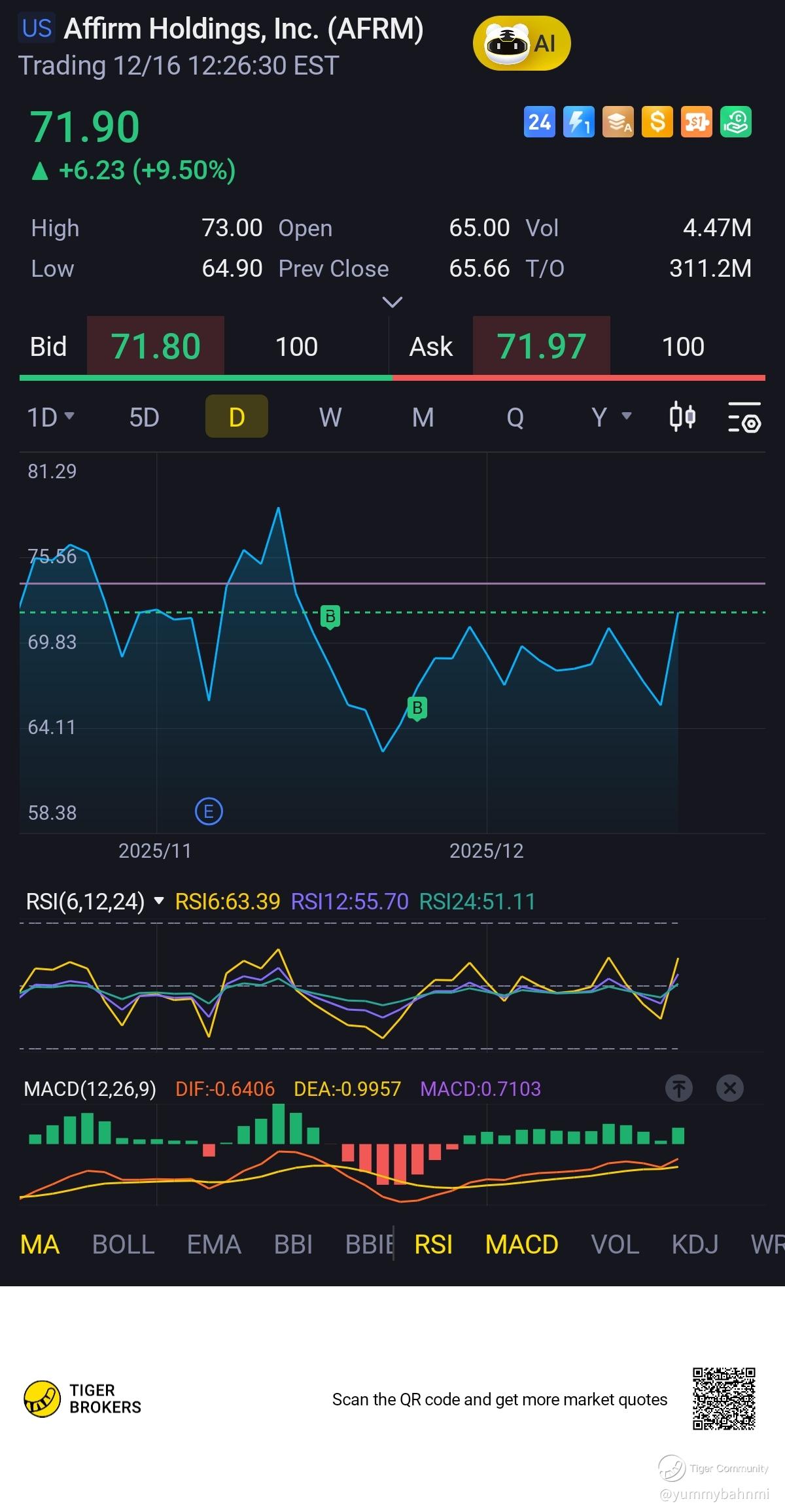 $Affirm Holdings, Inc.(AFRM)$ no news today, just a random 9.5% increase?!