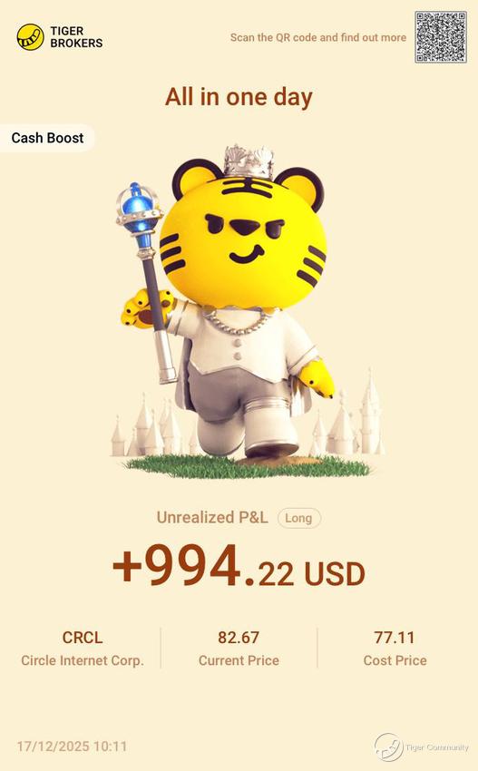 $Circle Internet Corp.(CRCL)$ Stock profits arrived, just making up for the budget for family gifts!