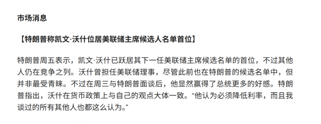 On U.S. prediction markets Kalshi and Polymarket, the probability of Warsh being nominated by Trump as Fed Chair rose by 17 and 24 percentage points, respectively, yet his overall probability still remained below Hassett’s. The main reason is that Trump wants a Fed Chair who will follow “his” preference for rate cuts, while Warsh’s past remarks indicate a hawkish stance on inflation—precisely the market’s biggest concern, and something reflected in the equity pullback. Still, the final choice will not be settled until January next year, and without concrete evidence, trading and volatility remain relatively subdued, so a large drawdown in equity indices does not seem likely.