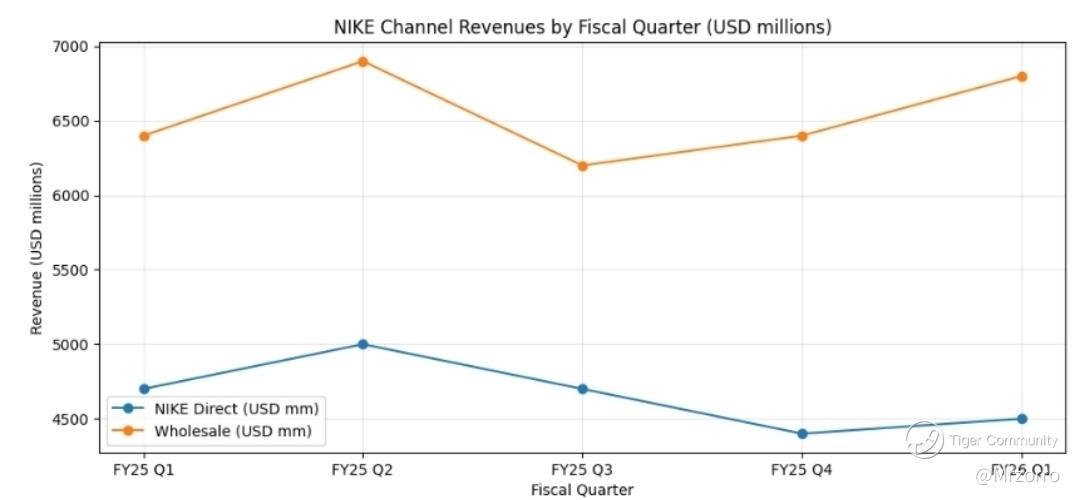 Nike's business comprises Direct revenues and Wholesale revenues. Although Q1 showed revenue and earnings beats with signs of "stabilization," declining gross margins and uncertainty in the Greater China recovery keep the market cautious. The focus for this quarter boils down to three points: