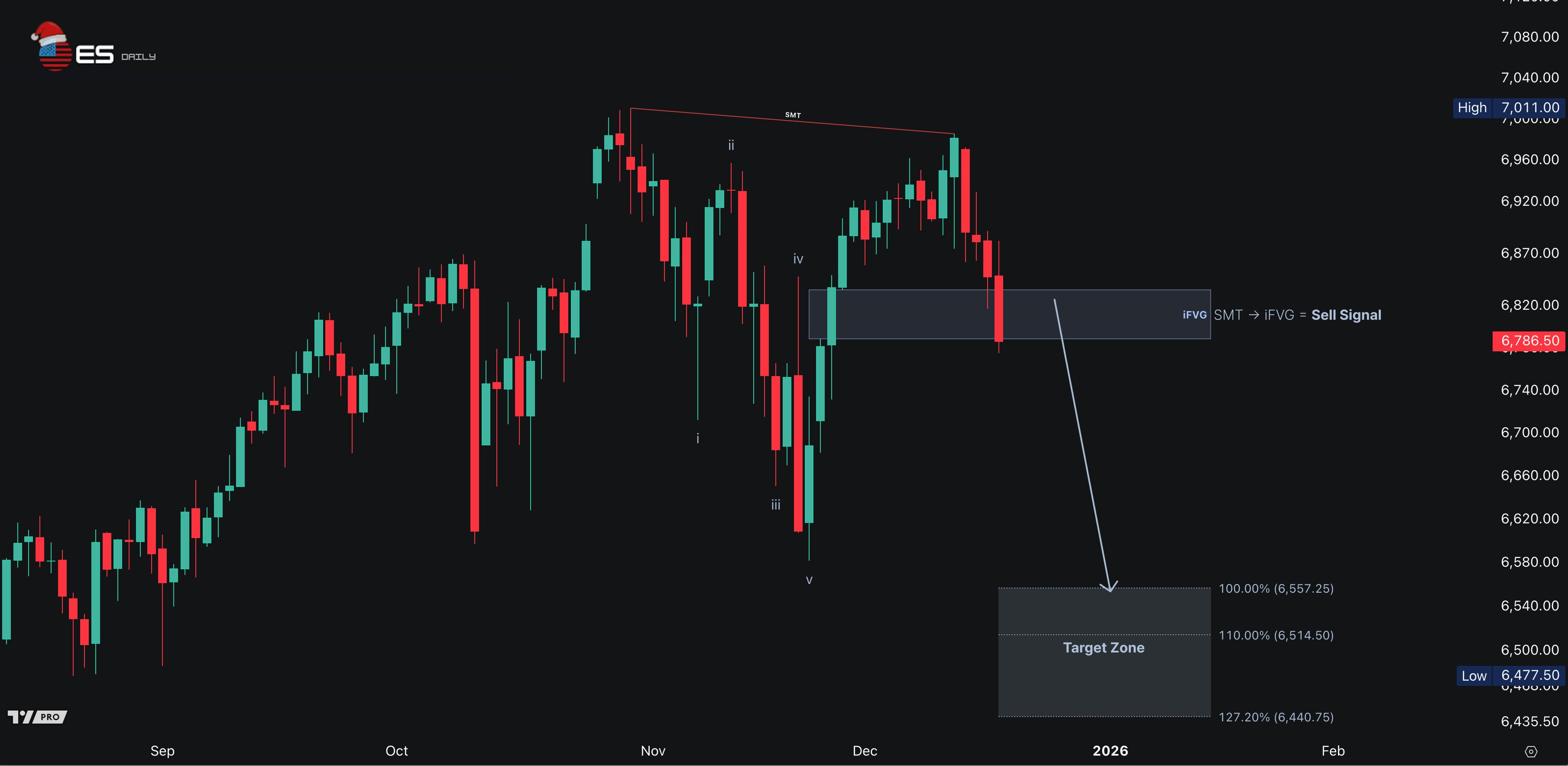Combined with the bearish SMT, a high-conviction SELL SIGNAL has been triggered.