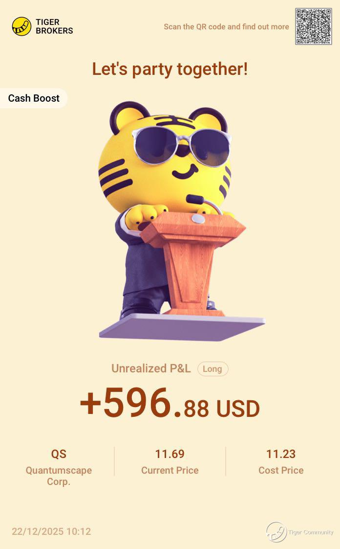 $Quantumscape Corp.(QS)$ Solid-state battery hype is real with QS! Followed the sector potential, grabbed easy profits.