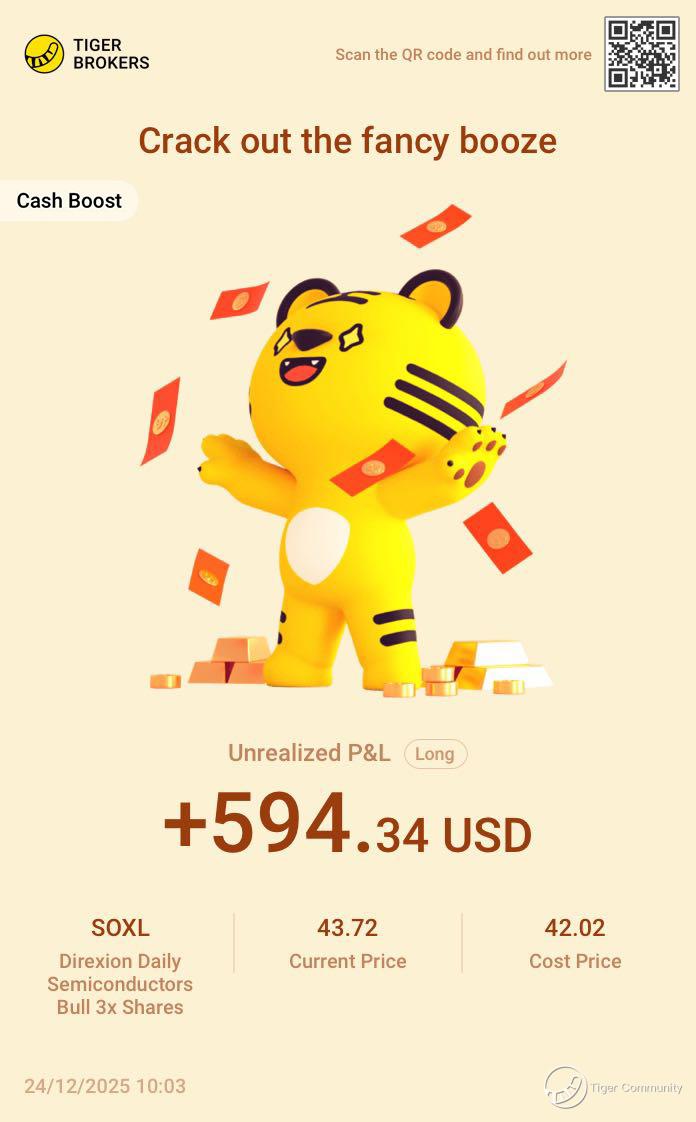 $Direxion Daily Semiconductors Bull 3x Shares(SOXL)$ ’s rally is unstoppable! Strong momentum from tech trends, sweet profits just keep coming hot!
