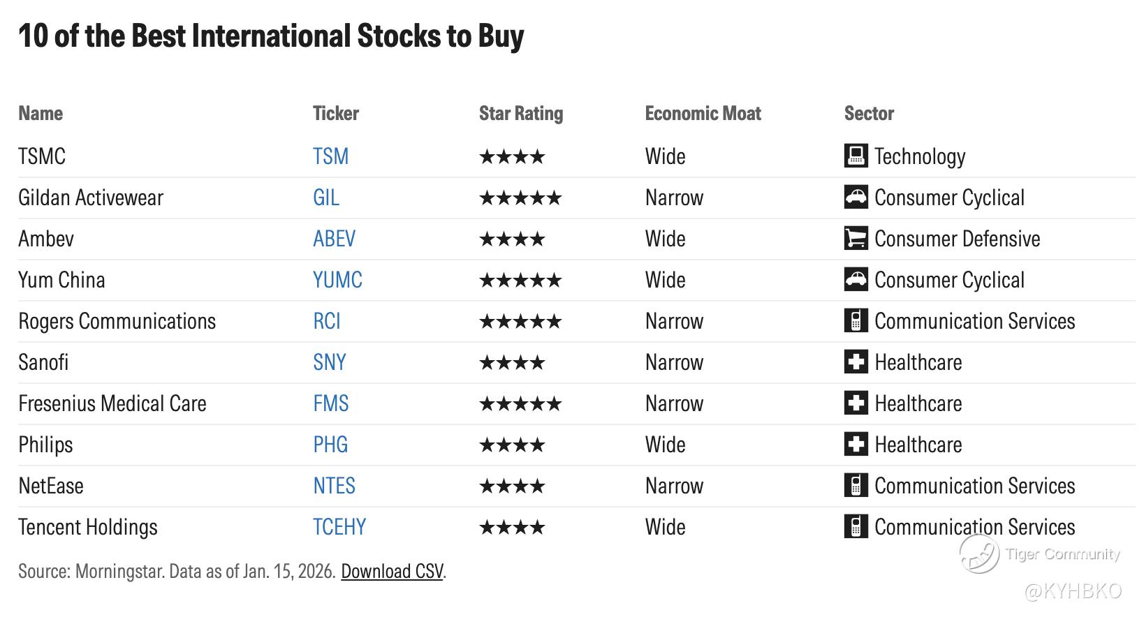 I saw this interesting list from one of Morningstar’s posts. Let us research before investing. Ascertain an adequate margin of safety before setting a target price.