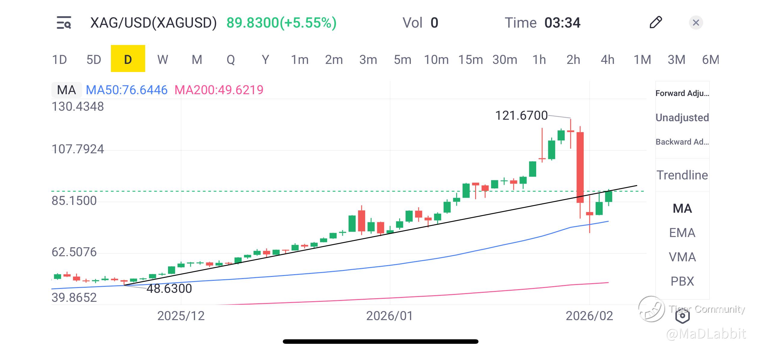 $XAG/USD(XAGUSD.FOREX)$ $iShares Silver Trust(SLV)$ Silver after big fall, now it is at a critical resistance level At $90. It needs to recapture $100 by end of this week to keep the bull alive if it does nto capture $100 then in the short term it could fall to $54 before bouncing again. So now capturing $100 to keep the momentum alive! Are you still holding silver? Or have you paper hand? Long term I'm Super bullish for silver. I expect it to hit $300 before trump terms end. What do you think?