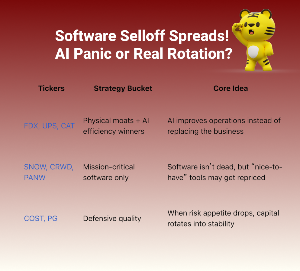 One of the biggest triggers behind this selloff is the market repricing how fast AI could disrupt parts of the software stack.