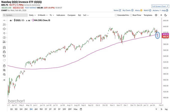 Nasdaq $QQQ closes below 100-day moving average for only the 2nd time since May ๐จ๐คฏ๐