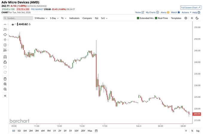 Advanced Money Destroyer $AMD getting absolutely dumped ๐๐