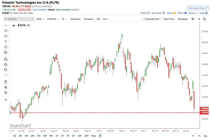 Palantir $PLTR plunges to lowest price since July ๐๐