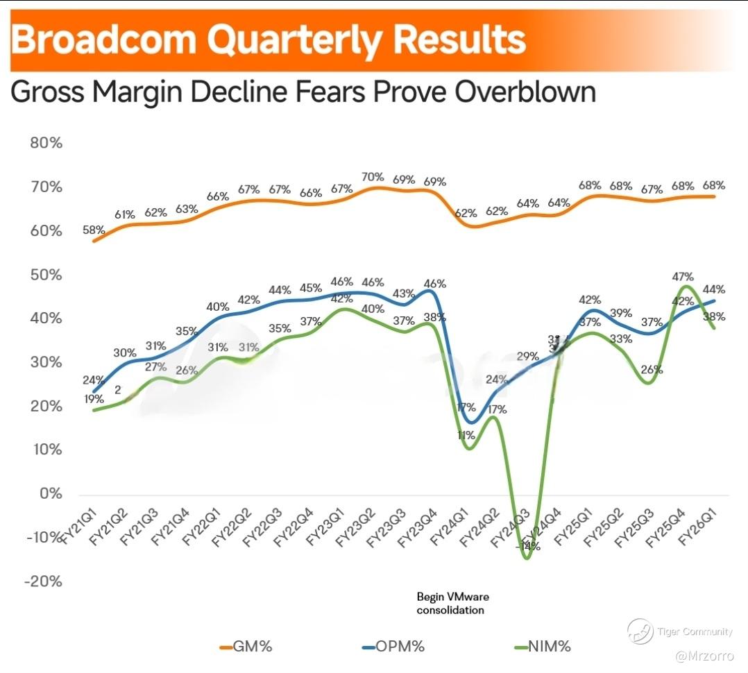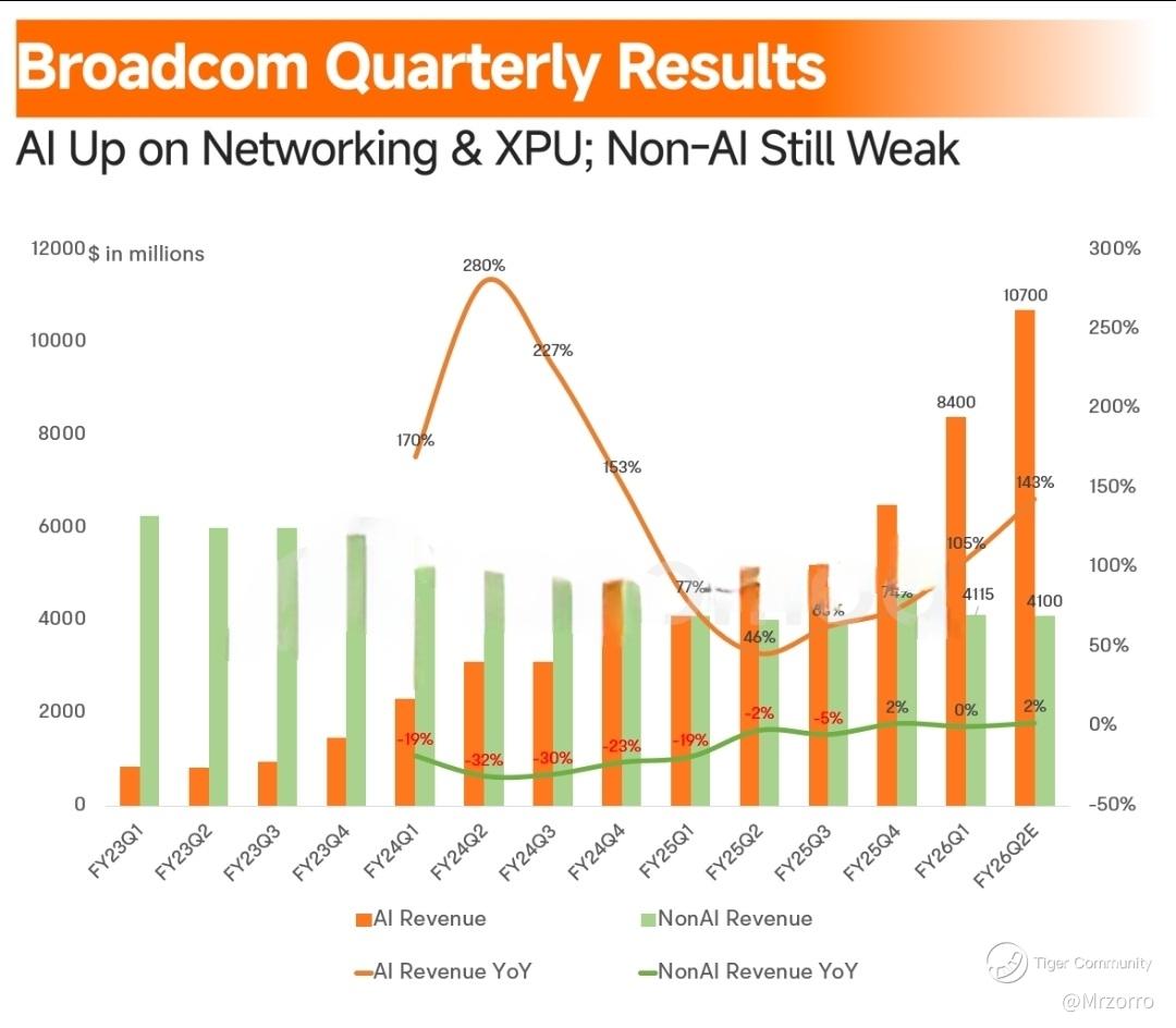 Although VMware revenue grew 13% YoY this quarter, Total Contract Value (TCV) came in at $9.2 billion, down $1.2 billion sequentially. As for market concerns that AI could cannibalize the software business, management was emphatic: Broadcom's infrastructure software business is not being replaced or disrupted by AI. VCF cannot be bypassed, nor can it be substituted. The growth of generative AI and Agentic AI will actually stimulate greater VMware demand over time.