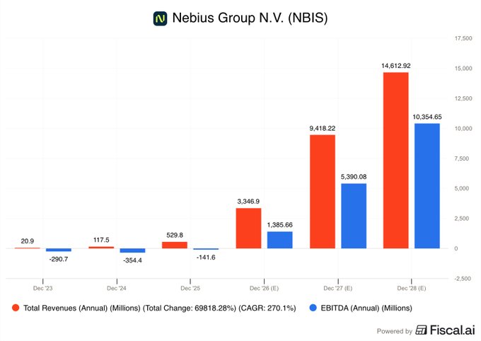 Taking the $10B 2028 EBITDA estimate into account, $NBIS trades at 2.8x 2028 EBITDA.