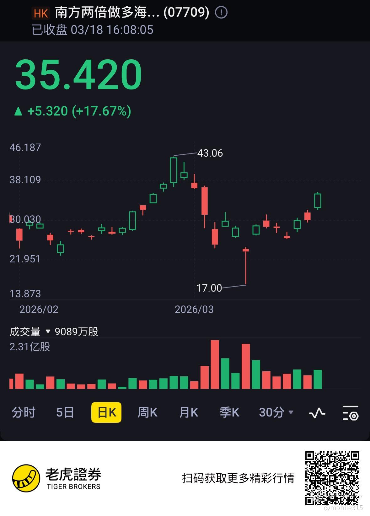 $南方两倍做多海力士(07709)$
