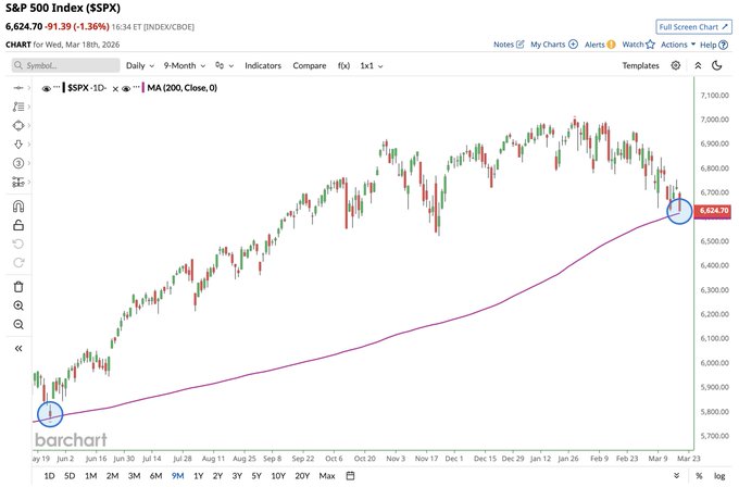 S&P 500 $SPX is now the closest its been to falling below its 200-day moving average since May 🚨🚨🚨