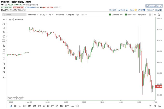 Micron $MU falling after earnings announcement 📉📉