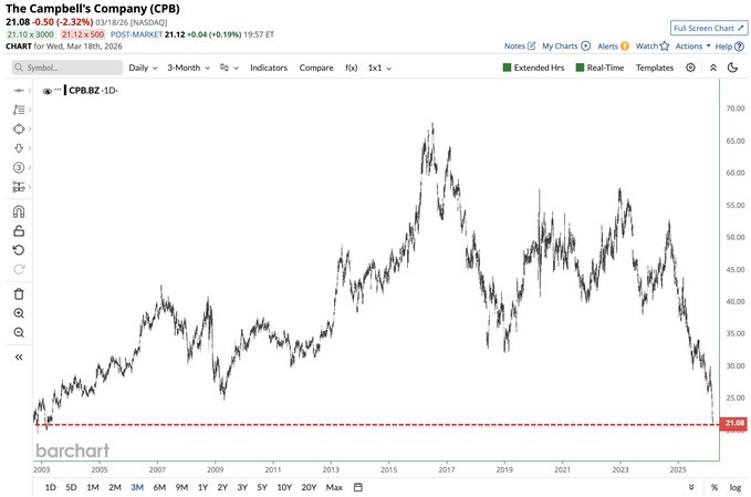 Campbell's Soup $CPB falls to lowest price in nearly 23 years 📉📉