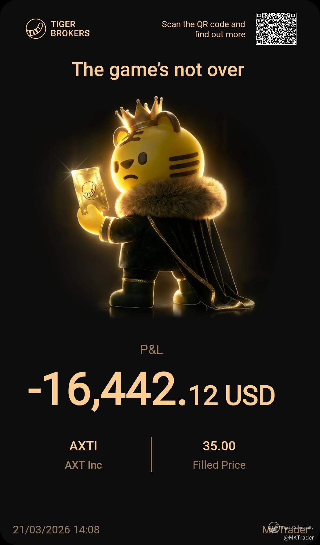 $AXT Inc(AXTI)$ Not actually a loss. This is result from scalping as it is calculated that I entered high. In actual my cost was 14 plus after scalping.