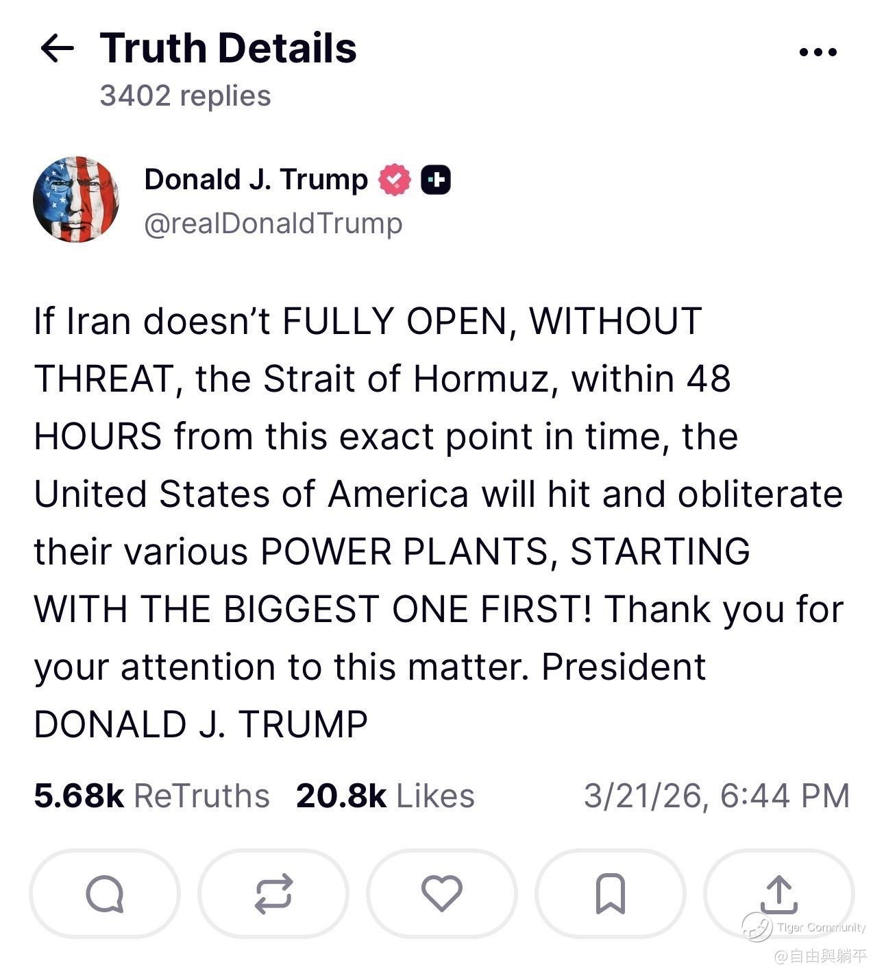 Trump now gives Ultimatum on Strait of Hormuz