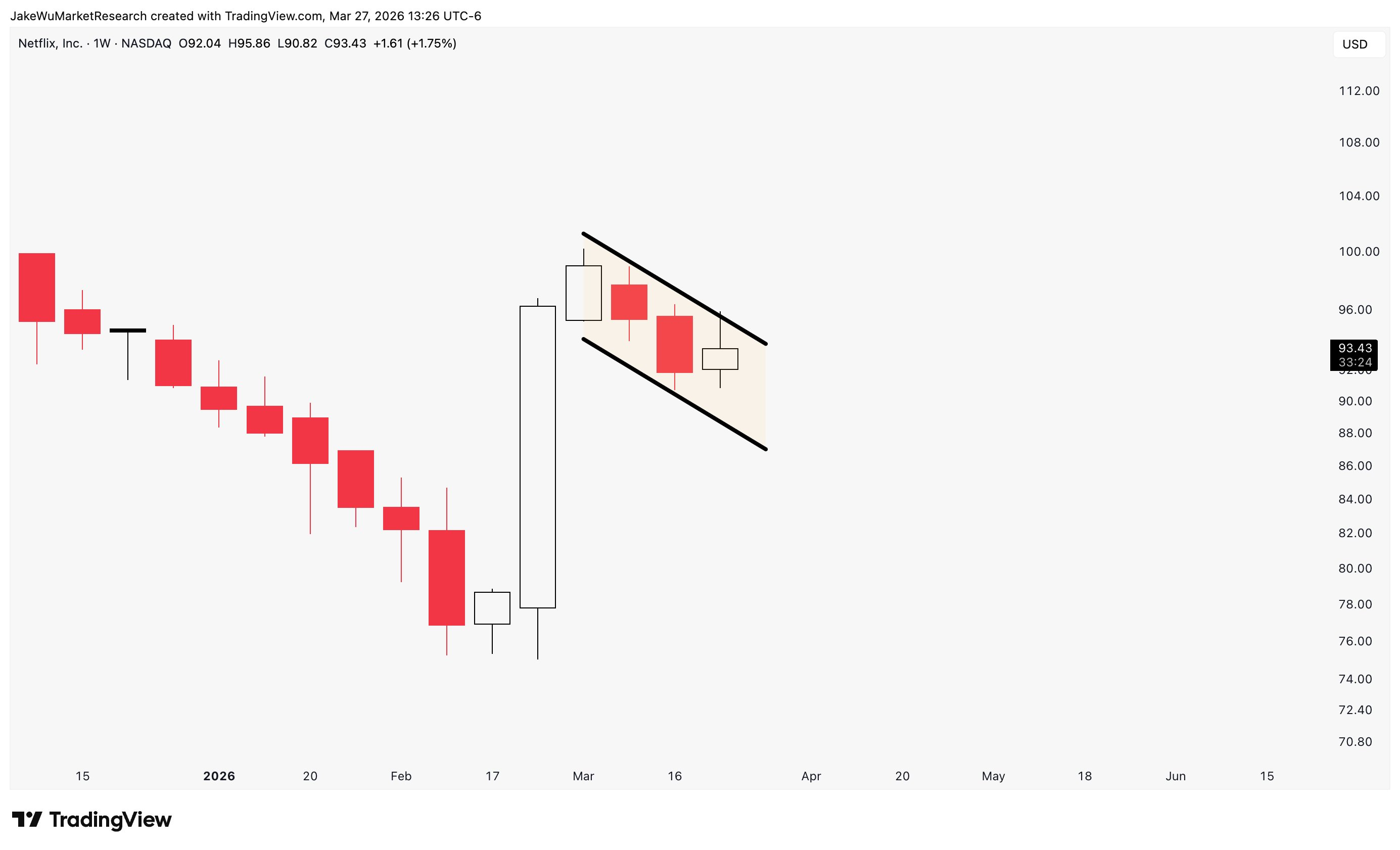 $Netflix(NFLX)$ Not many charts out there right now that have this insane of relative strength this week (other than oil).