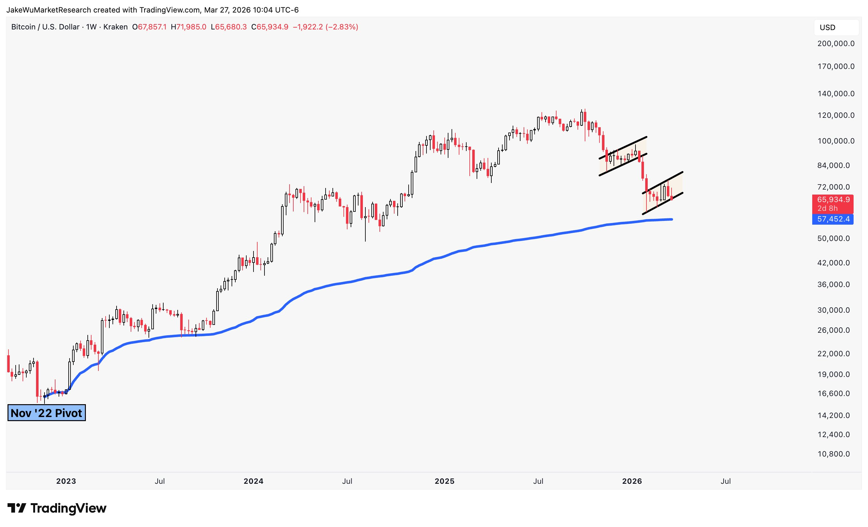 If this bear flag did break down, the November 2022 pivot VWAP is currently around $57,500.