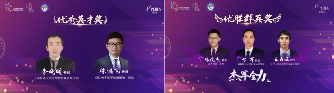 在三輪的激烈角逐過後,浙江大學醫學院附屬第一醫院的徐鴻飛教授、上海交通大學醫學院附屬新華醫院的李曉明教授榮獲優秀英才獎,傑軍全力戰隊榮獲優勝羣英獎,各位TAVR評委導師對參賽嘉賓的精彩表現表達了一致認可並對他們進行了頒獎。我們同時期待各位優勝選手加入到年度總決賽的比拼中一展風采。