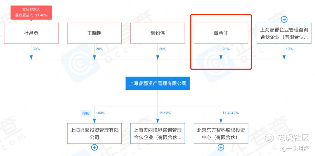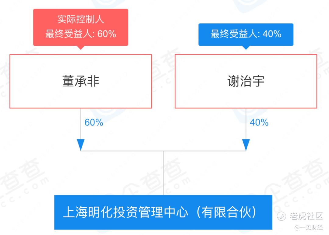 企查查顯示,董承非名下共有2家企業,在上海明化投資管理中心(有限合夥)擔任執行事務合夥人並持股60%,在上海睿郡資產管理有限公司持股20%。