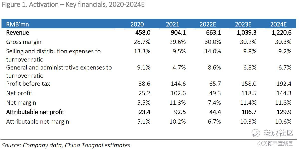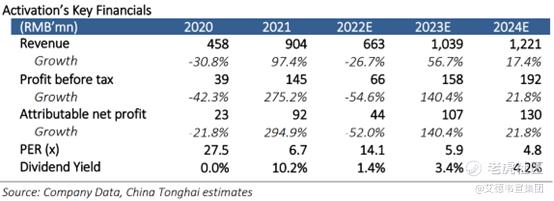 Although its financials would be affected in 2022E, we expect Activation to recover in 2H22 with revenue and earnings in 2023E to exceed the level in 2021. We expect net margin to improve to 10.3% in 2023E, from 10.2% in 2021 and 6.7% in 2022E. Thus, we expect the company to achieve strong growth in net profit (2022-24E CAGR of 71.1%), reaching RMB130mn in 2024E.