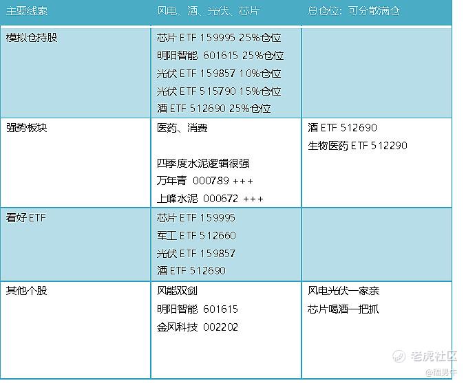 看盤精華在文稿區可以查看,繼續風電光伏一家親,喝酒芯片一把抓,中石油、中石化估計後面慢慢悠悠會漲,就不放進去了。水泥在這次高層會議後會有利空,後續看看再說,但是四季度業績肯定沒問題,因爲成本是轉嫁給下游的。
