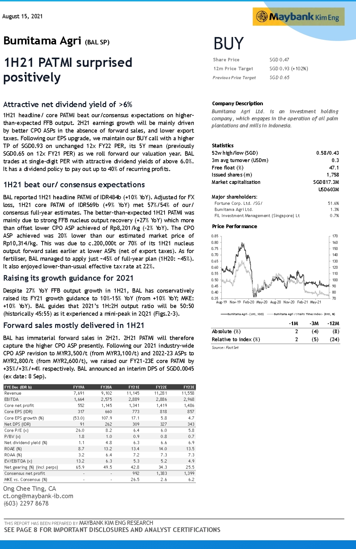 $BUMITAMA AGRI LTD.(P8Z.SI)$new TP SGD0.93 from Maybank.