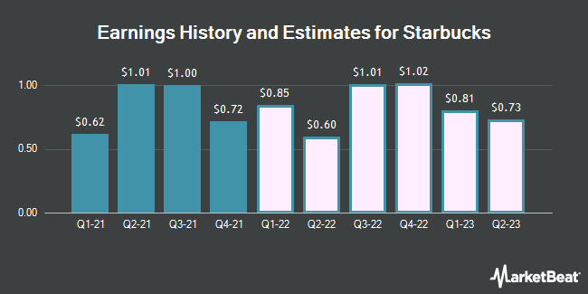Equities analysts forecast that Starbucks Co. will announce earnings per share of $0.61 for the current fiscal quarter. Ten analysts have provided estimates for Starbucks' earnings. The highest EPS estimate is $0.68 and the lowest is $0.58. Starbucks posted earnings of $0.62 per share during the same quarter last year, which would indicate a negative year-over-year growth rate of 1.6%. The business is expected to announce its next quarterly earnings report on Monday, January 1st.