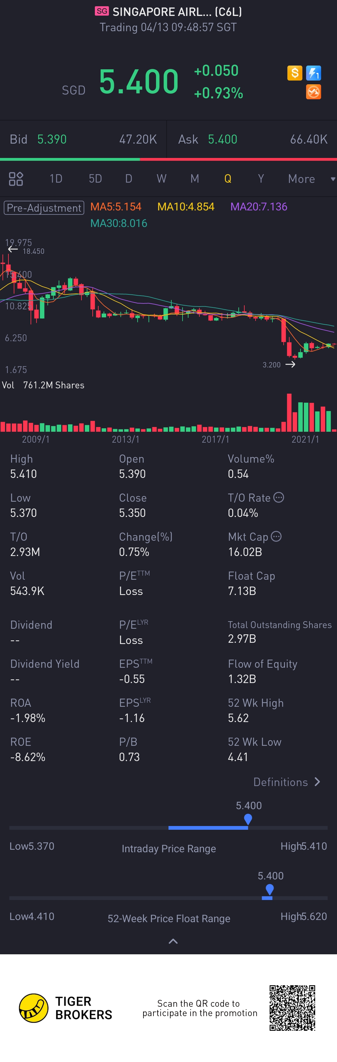 $SINGAPORE AIRLINES LTD(C6L.SI)$up