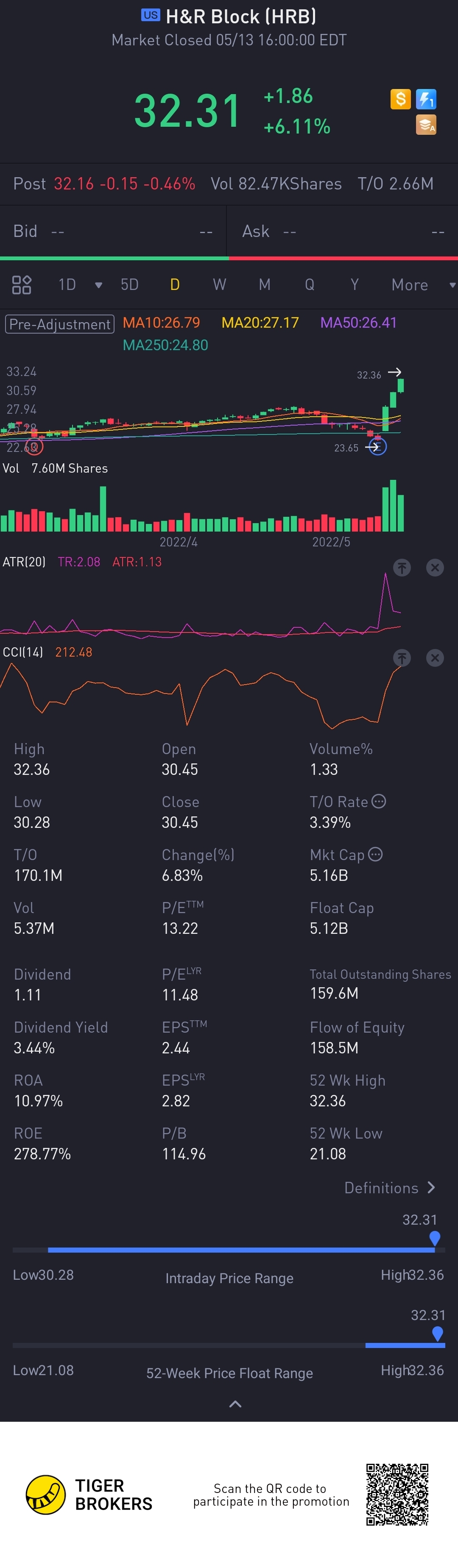 $H&R Block(HRB)$(Source: Zack) H&R Block is the world's largest income tax filing company. HRB provides assisted tax return preparation and do-it-yourself (DIY) tax return preparation services to the general public. The company offers its services through a system of retail offices primarily located in the U.S., Canada, and Australia. HRB also provides small business financial solutions and online access to service plans. H&R Block was founded in 1955 and is headquartered in Kansas City, MO.