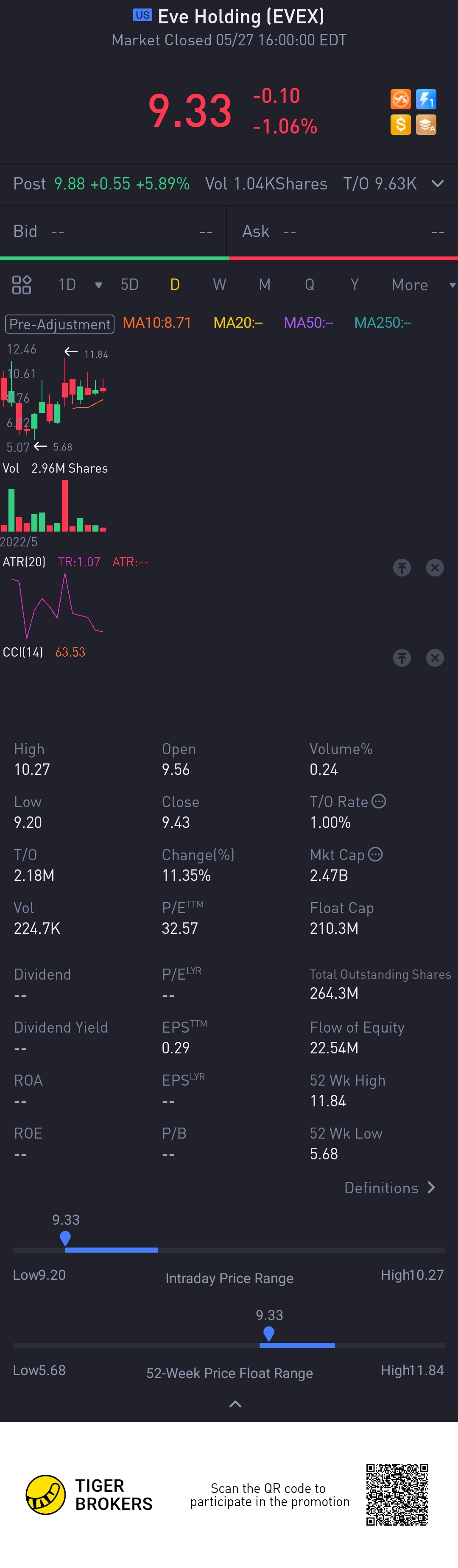 $Eve Holding(EVEX)$newly listed via SPAC, some fund manager said this is the future Transportation to bring electric vertical takeoff and landing (eVTOL) aircraft to the skies by 2026