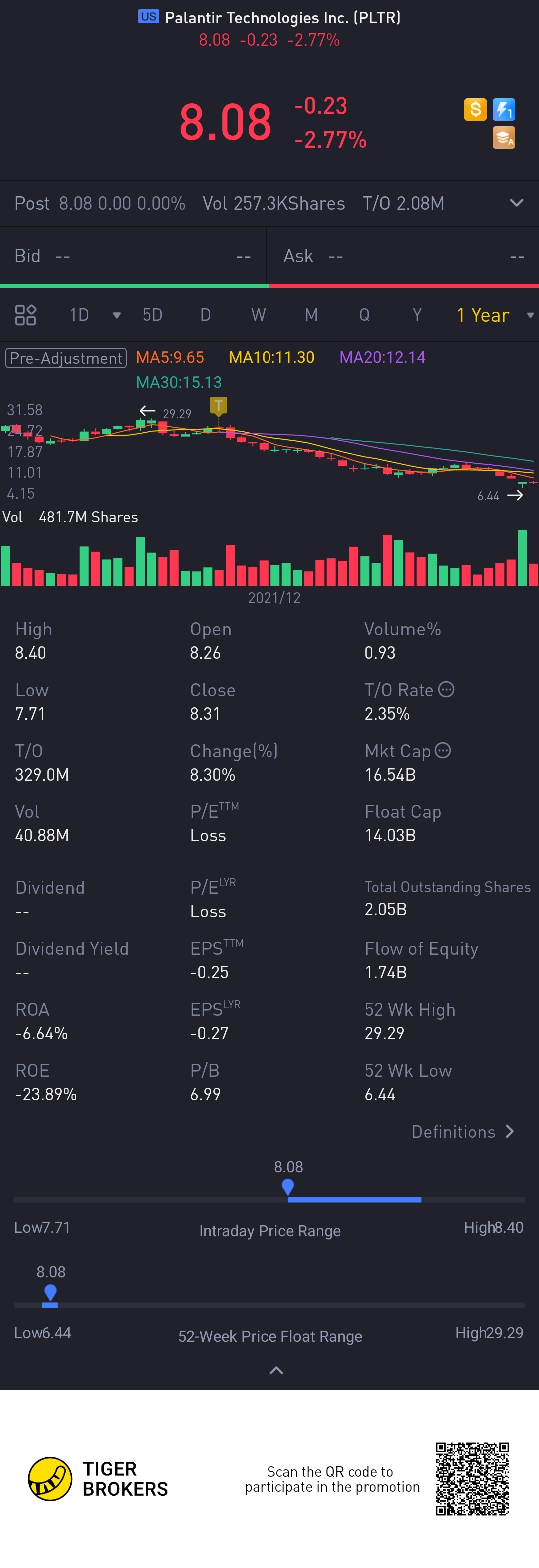 $Palantir Technologies Inc.(PLTR)$This is one share i don't recommend. Dont believe in its biz model to scale