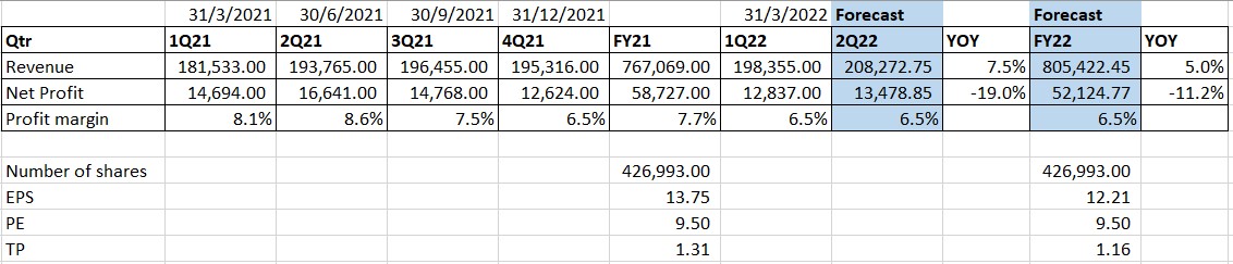 Did a simple calculation, my target price to FY22 Frencken is 1.16 and is a sell call.