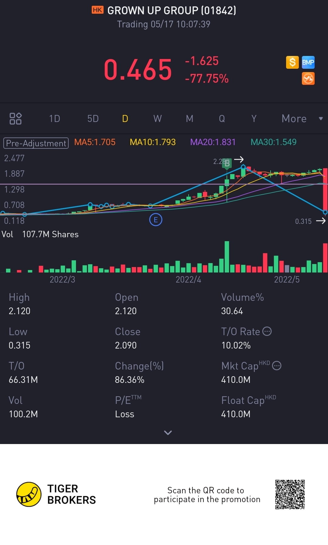 $GROWN UP GROUP(01842)$I'm think I will loss about $2k of my investment this when I just open up the app to see this stocks just gone down the hills